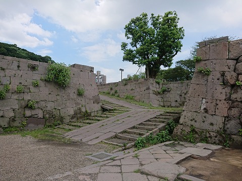 明治初期に記された成尾常矩指図によると、本丸には大小100以上の部屋があったとされ、そのうちの一つには能舞台もあり、平成26(2014)年度の発掘調査で、 その一部が見つかりました。現在、鹿児島城跡の山城(城山)部分が国指定史跡及び天然記念物に、本丸部分の石垣などが県指定史跡となっています。