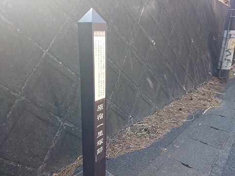 原宿の一里塚は、起点の江戸日本橋から測って11里目にあたっている。塚の付近に茶店などがあったので、 原宿と呼ばれるようになったという。