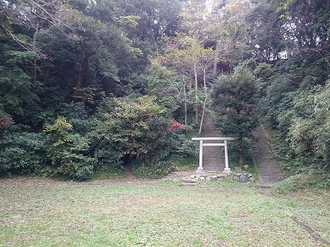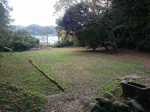 左が三浦泰村やぐら、中央鳥居が大江広元・毛利秀光の墓、右階段が島津忠久の墓