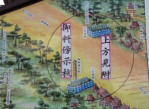この「上方見附」は東小磯村加宿のはずれにあり、現在の「統監道」バス停の付近にあった。