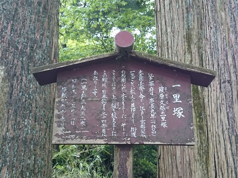 江戸幕府は、慶長9年(1604)大久保長安に命じ、江戸-京都間に一里ごとに旅人の目印として、 街道の西側に盛土をしました。そして、ここではその上に檀を植えました。この塚は、 日本橋より24番目にあたります。