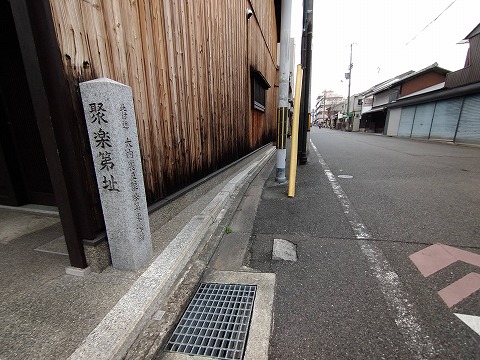 この石碑のおかげでこの辺りに聚楽第があったんやということが分かるだけどす。