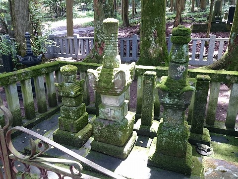 中央が幸隆公、左が幸隆公夫人、右が昌幸公の墓