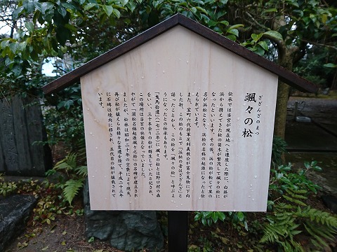 また、室町6代将軍足利義教公が富士見物に下向した折、この松のもとで「浜松の音はざざんざ」と謡ったことから、 この松を「颯々の松」と呼ぶようになったとの伝承もあります。