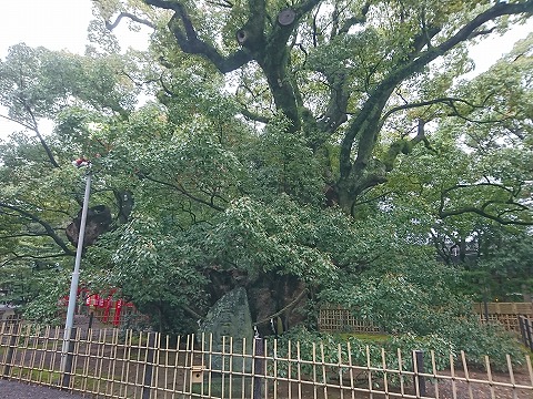 楠の巨樹で、地上1.5mの幹回り約13m、根元回り14m。枝張東西約21m、南北約23m、樹高約15mあり、幹の下部には大きな空洞がある。 幹は地上1.5mのところより数枝に分かれ、古木の部は樹勢が衰えているが、新生部はすこぶる旺盛で、枝葉は四方に繁茂している。