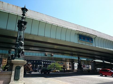 日本橋がはじめて架けられたのは徳川家康が幕府を開いた慶長8年(1603)と伝えらえています。 幕府は東海道をはじめとする五街道の起点を日本橋とし、重要な水路であった日本橋川と交差する点として 江戸経済の中心となっていました。橋詰には高札場があり、魚河岸があったことでも有名です。幕末の様子は、 安藤広重の錦絵でも知られています。