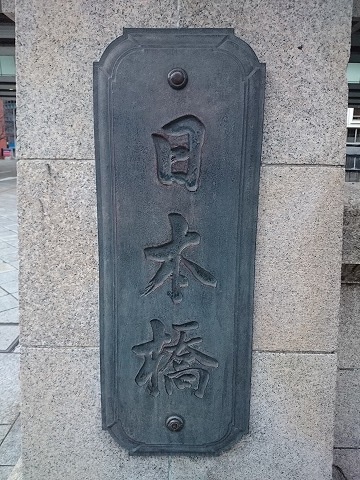 現在の日本橋は東京市により、石造二連アーチの道路橋として明治44年に完成しました。橋銘は第15代将軍 徳川慶喜の筆によるもので、青銅の照明灯装飾品の麒麟は東京市の繁栄を、嗣子は守護を表しています。 橋の中央にある日本国道路元標は、昭和42年に都電の廃止に伴い道路整備が行われたのを契機に、同47年に柱から プレートに変更されました。プレートの文字は当時の総理大臣佐藤栄作の筆によるものです。