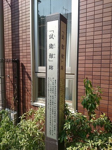 幕末に新選組局長として知られる近藤勇の道場「試衛館」は、市ヶ谷甲良屋敷内(現市谷柳町25番地) のこのあたりにありました。この道場で、後に新選組の主力となる土方歳三、沖田総司などが剣術の腕を みがいていました。