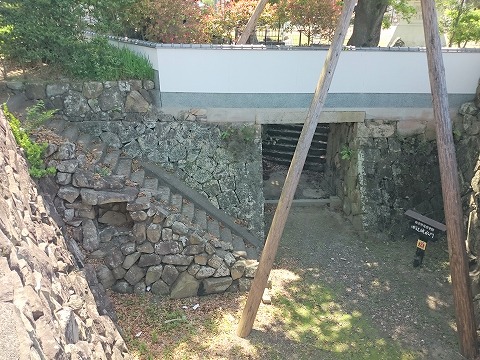 明治3年(1870)田辺城は廃城となり、遺構の多くは姿を消しましたが、埋門型の水門とそれに続く石垣が当時の面影を留めています。