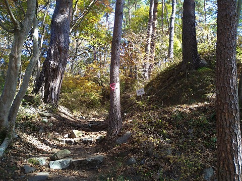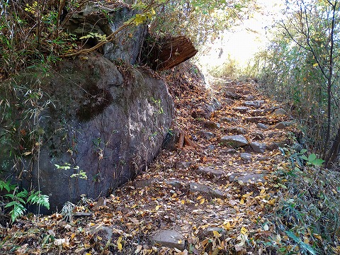南東尾根上には支城の熊城があり、深い堀切で区切られた連続的な小郭と畝状堅堀が 特徴的です。また、ふもとには根古屋の地名が残り、城番を勤める武士の屋敷が想定されています。
